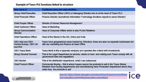 Example of Tesco PLC functions linked to structure