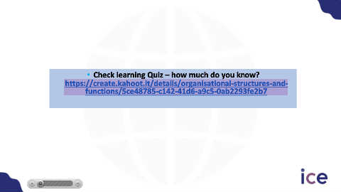 • Check learning Quiz – how much do you know? https://create.kahoot.it/details/organisational-structures-and- functions/5ce48785-c142-41d6-a9c5-0ab2293fe2b7