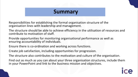 Responsibilities for establishing the formal organisation structure of the